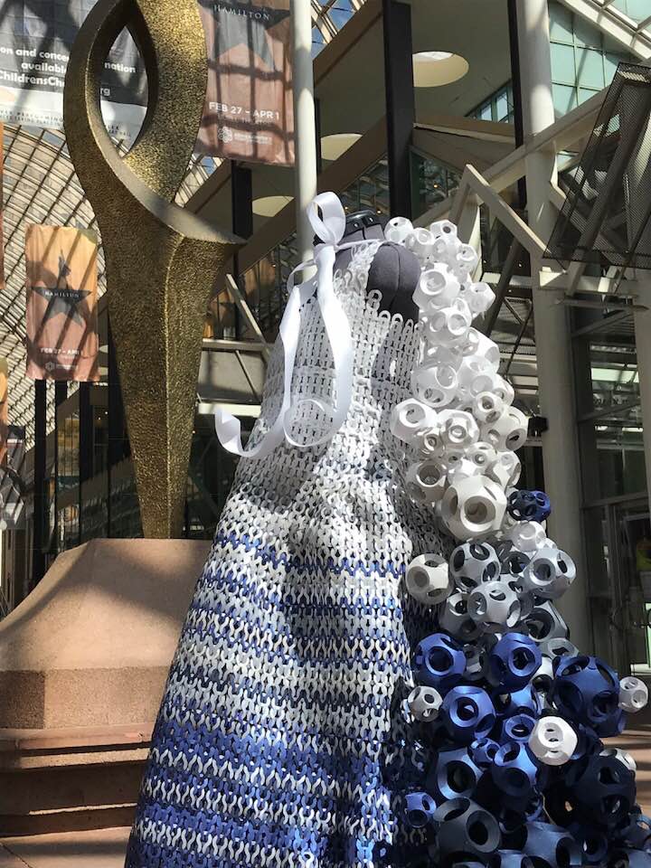 The cape is more than a cape, but art in motion as it carries the model down the runway. Made from over 450 spheres, individually cut, folded and glued it is an airy, fluid sculpture. All the elements of “Azure Waves” amplify qualities inherent in Mohawk Paper: strength and flexibility, color and light, adaptability and connection. This collaboration between Mohawk Paper and Blue Linen Creative exemplifies the beauty that premium materials can bring to any paper creation in a unique way making this dress beautiful, memorable and dramatic.